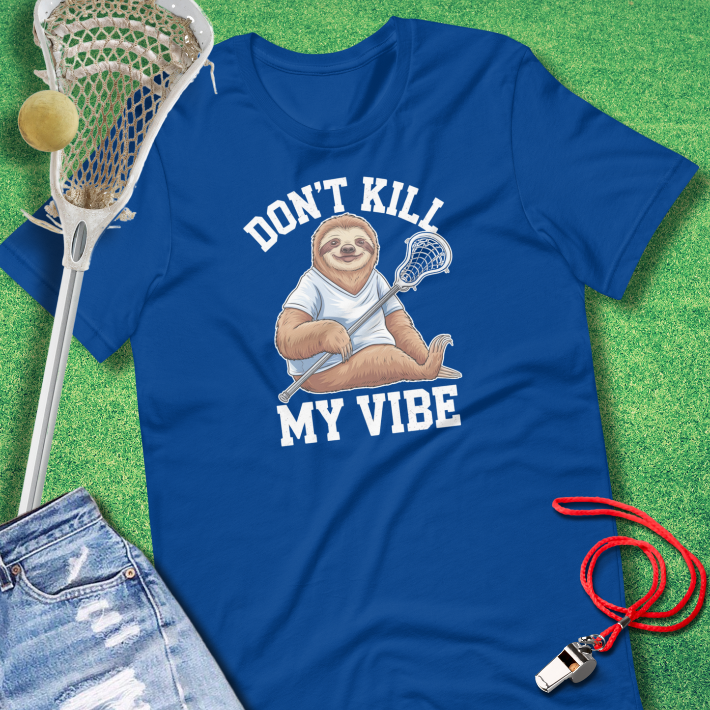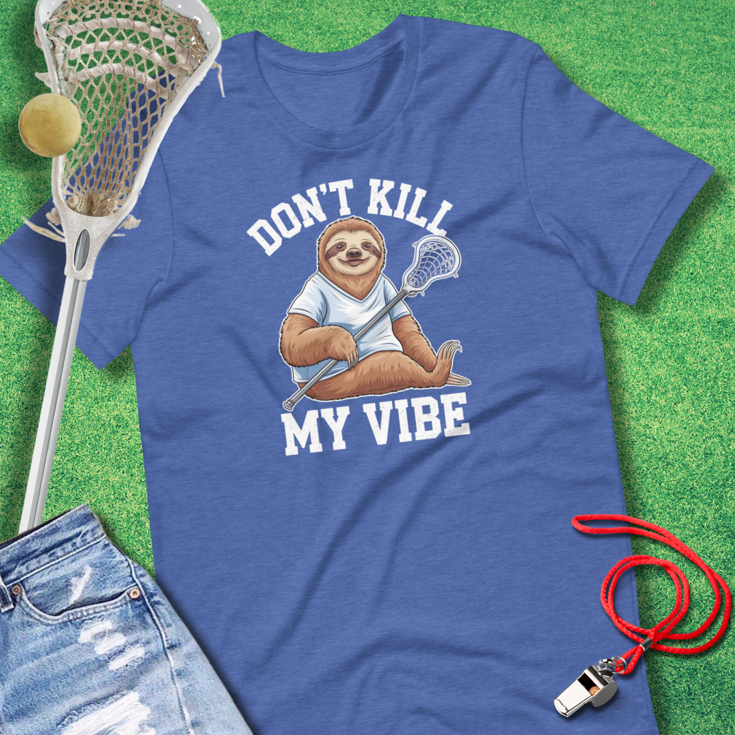 Cheer on your sport in comfort and style with the Don't Kill My Vibe Sloth T-Shirt! Whether you’re on the passing around in the yard or catching a game on t.v., this shirt is designed for lacrosse player who know how to chill while loving lacrosse.
