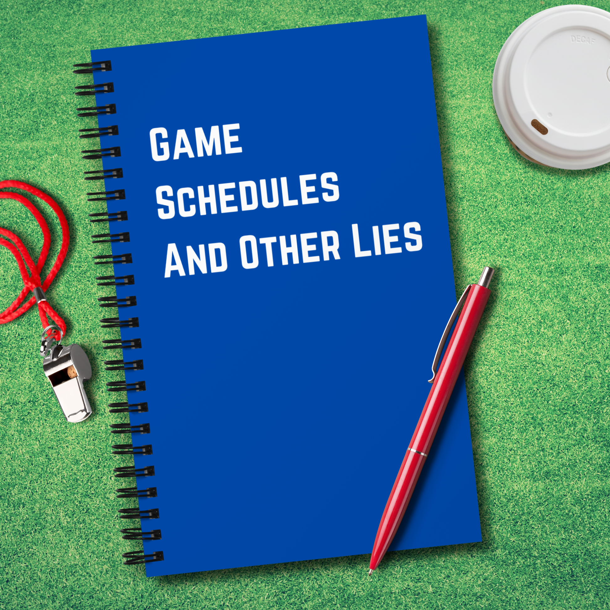 Because every sports parent knows the “official” schedule is just a suggestion — meet the Sideline Gods “Game Schedules and Other Lies” Notebook.
