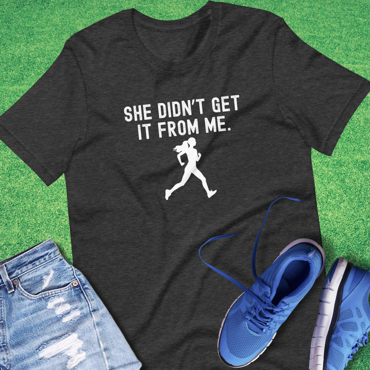 Own the joke with our She Didn't Get It From Me tee — perfect for cross country parents who know their runner’s speed didn’t come from their side of the gene pool. Fun, relatable, and a race-day favorite for cheering with a smile.